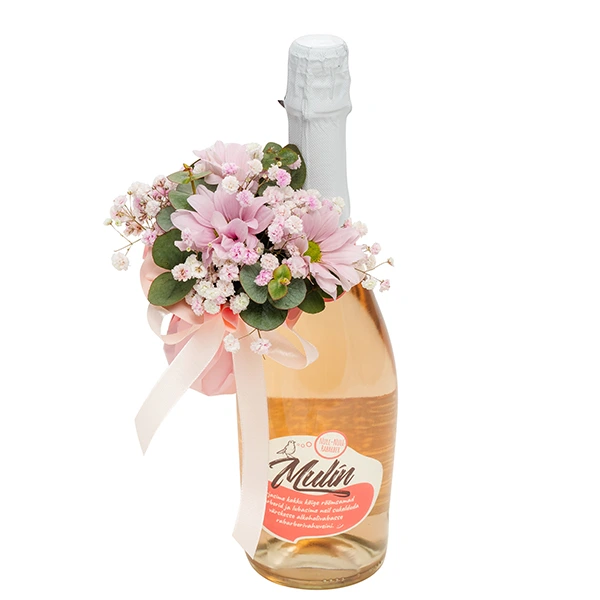 Tahaks tähtpäeval tervitust saata, aga ainult vahuveini pudeli pole ka päris see? Kui oled mõtetes sarnaste küsimuste ees olnud, siis oled leidnud siinkohal õige kinkekomplekti trendikast alkoholivabast Mulin vahuveinist ning sellele kombineeritud stiilsest ja minimalistlikust lillaõielisest lilleseadest.