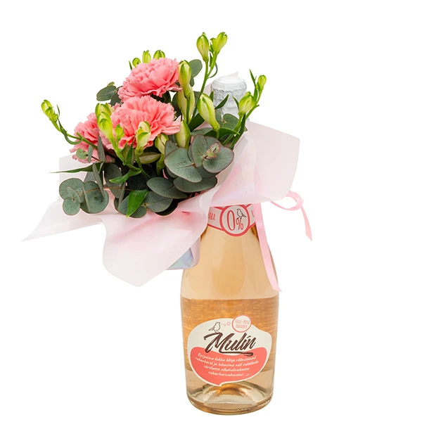 Tahaks tähtpäeval tervitust saata, aga ainult vahuveini pudeli pole ka päris see? Kui oled mõtetes sarnaste küsimuste ees olnud, siis oled leidnud siinkohal õige kinkekomplekti trendikast alkoholivabast Mulin vahuveinist ning sellele kombineeritud stiilsest ja minimalistlikust lillaõielisest lilleseadest.