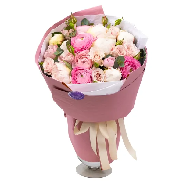 Elegantne roosa lillekimp, milles on ühendatud õrnad roosad ja kreemikad õied ning värske kimburoheline. Romantiline ja harmooniline lillekimp kingituseks, mis sobib suurepäraselt sünnipäevaks, tähtpäevaks või erilise hetke tähistamiseks. Värsketest lilledest valmistatud lillekimp, mis väljendab soojust, hoolivust ja ilu.
