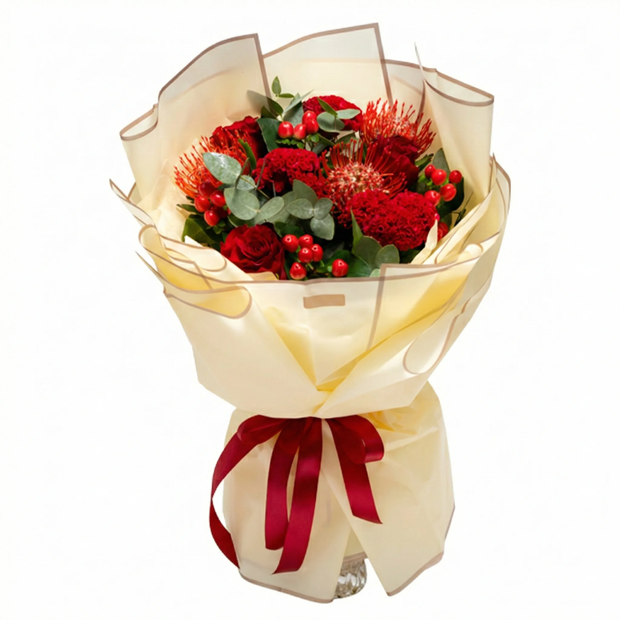 Punastest õitest seatud lillekimp on kaunisja klassikaline lillekimp igaks tähtpäevaks. Dekoratiivpaber ja pael annavad kimbule kauni raami. Armastust täis ja kaunis kingitus kõige kallimale.