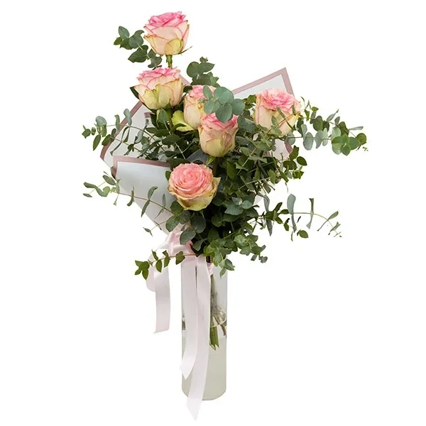 Klassikalime lillekimp roosadest roosidest, ilmestatud trendika eukalüptiga. Trendikas valik, mis sobib kinkimiseks igal tähtpäeval!