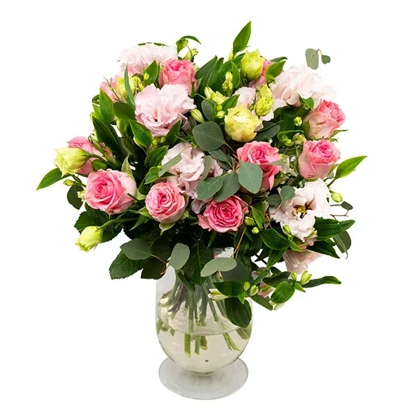 Roosatooniline kaunis lillekimp roosidest, preeriakelladest ja inkaliiliatest - imeline tervitus igale printsessile - lillekimp nagu unistus!