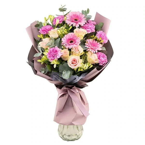 See kaunitest roosadest ja lilladest toonides suursugune lillekimp on uhke ja uljetavaldav kingitus igaühele. Kimbule on lisatud kaunis kimburoheline ning dekoratiivpaber ja pael loovad imelisele kimbule viimistletud raami.
