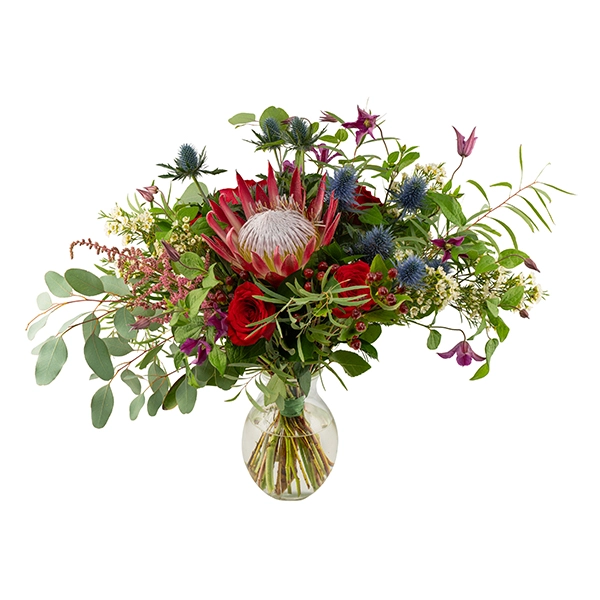 Kaunist proteast ja kimburohelisest kombineeritud lillekimp rõõmustab saajat ning sobib saatmiseks igal võimalikul juhul. Protead toovad ruumi eksootilisust ja eripära.