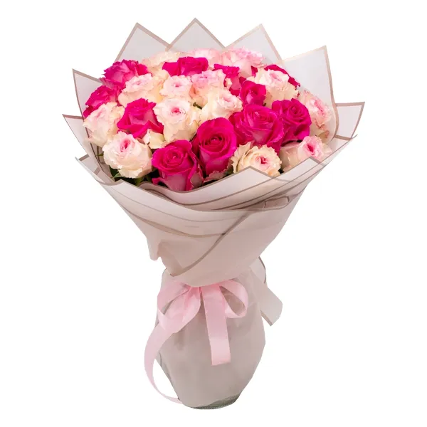 Romantiline roosikimp, milles on ühendatud õrnad heledad ja erksad roosad roosid. Lopsakas ja pilkupüüdev lillekimp kingituseks, mis sobib ideaalselt armastuse väljendamiseks, tähtpäevaks või erilise üllatusena kallimale. Värsketest roosidest valmistatud kimp, mis loob sooja ja meeldejääva emotsiooni.