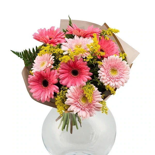 Erinevat roosat värvi gerberatest seatud kimp, mille ümber sobilik dekoratiivpaber. Kimp, mis toob iga saaja näole naeratuse.