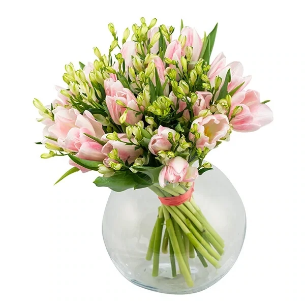 Saada lillekulleriga see ilus lillekimp roosadest tulpidest ja inkaliiliatest. Armas tulbikimp sobib saatmiseks iga sündmuse või tähtpäeva puhul.