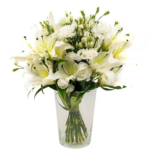 Valgetes toonides suurusugune lillekimp koosneb valgetest liiliatest, nelkidest ja preeriakelladest. Igati täiuslik lillekimp igale saajale.