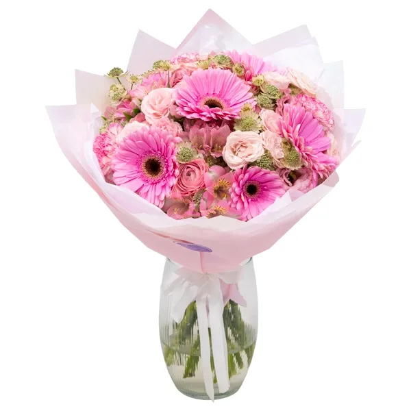 Täidlane roosa lillekimp, milles on ühendatud lopsakad roosad õied ja õrnad lisalilled koos värske kimburohelisega. Rikkalik ja pilkupüüdev lillekimp kingituseks, mis sobib suurepäraselt sünnipäevaks, tähtpäevaks või erilise hetke tähistamiseks. Värsketest lilledest valmistatud kimp, mis loob romantilise ja rõõmsa meeleolu.