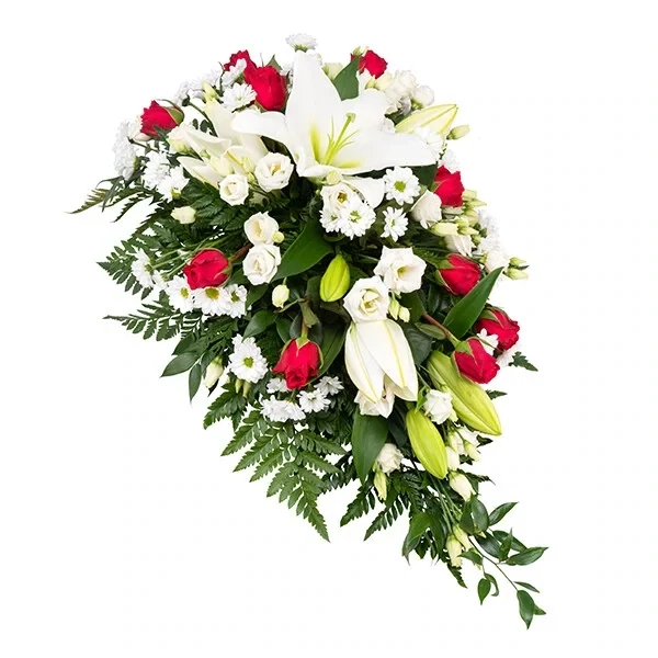 Klassikaline leinaseade valgete ja punaste lilledega