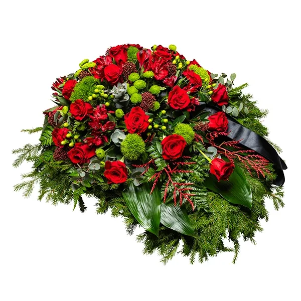 Leinapärg erinevatest punastest lilledest ning sobivast kimburohelisest.