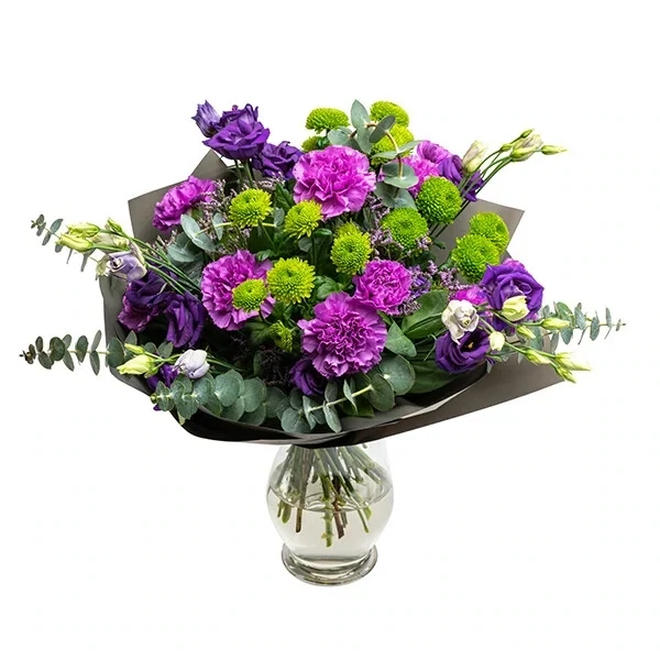 Selles violetses lillekimbus saavd kokku erinevad lillatoonlised lilled - uhkelt säravad lillad nelgid ja preeriakellad moodustavad terviku roheliste oksakrüsanteemide ja moodsa kimburohelisega. Lillat tooni peetakse eelkõige sügavate tunnete, vaimsuse ja kõrge loovuse värviks, kuid ka unistuste ja fantaasia värviks - seega selle kimbu saaja tunneb end kindlasti erilisena!