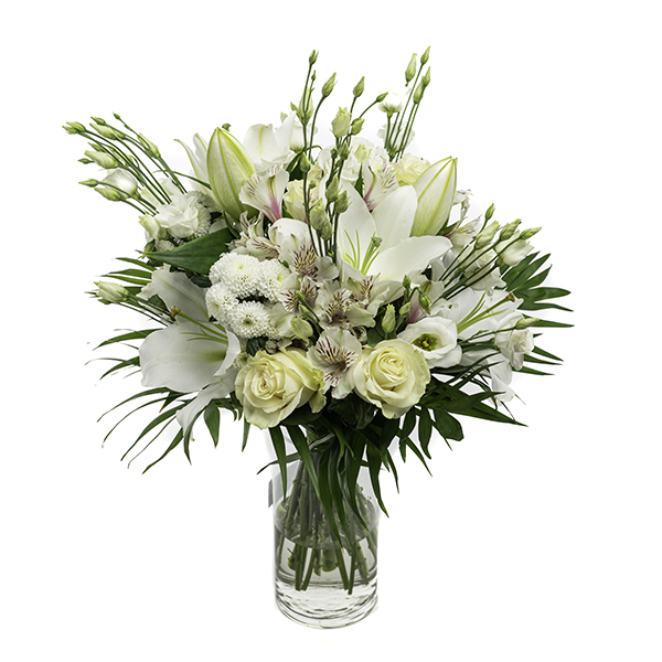 Erinevatest kaunitest valgetest lilledest koosnev trendikas lillekimp, mis mõjub samaaegselt lihtsalt ja eriliselt.