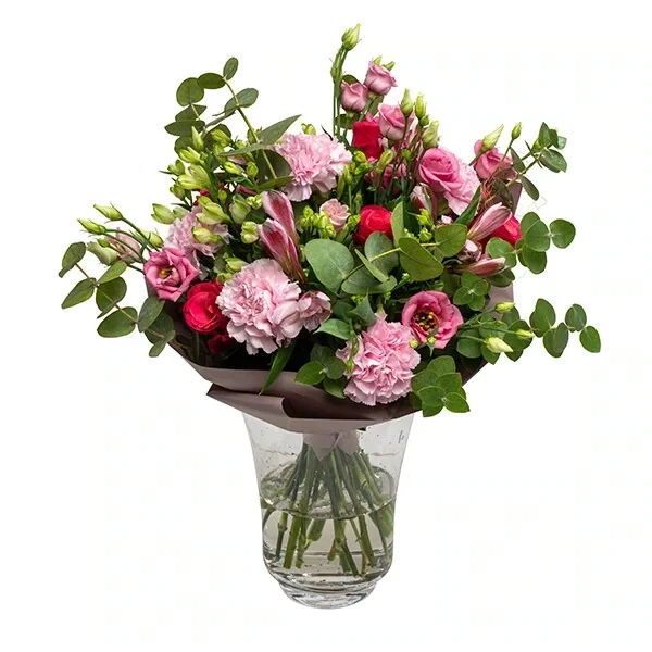 Kaunis roosatooniline lillekimp moodsatest õitest (preeriakell, nelk, roos) ja kimburohelisest. Sobib kinkimiseks igal tähtpäeval või sündmusel, nii särtsakale kui malbele lillesaajale.