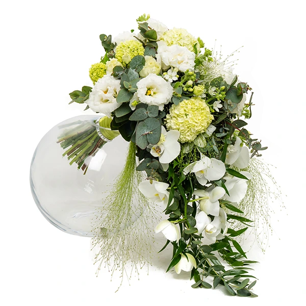 Õrnalt romantiline pruudikimp, loodud kaunitest preeriakellukestest ja elegantsest orhideest. See peene joonega kompositsioon õhkab naiselikkust ja õrnust – sobides suurepäraselt pruudile, kes hindab õhulist ilu ja väljapeetud maitset. Preeriakellukesed loovad kerguse, samas kui orhidee lisab luksusliku ja ainulaadse aktsendi.