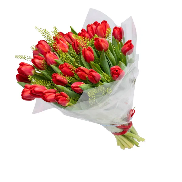 Kaunitest ja särtsakatest punastest tulpidest lillekimp sobib saatmiseks igal võimalikul juhul. Tulbid toovad ruumi värskust ja elegantsust!