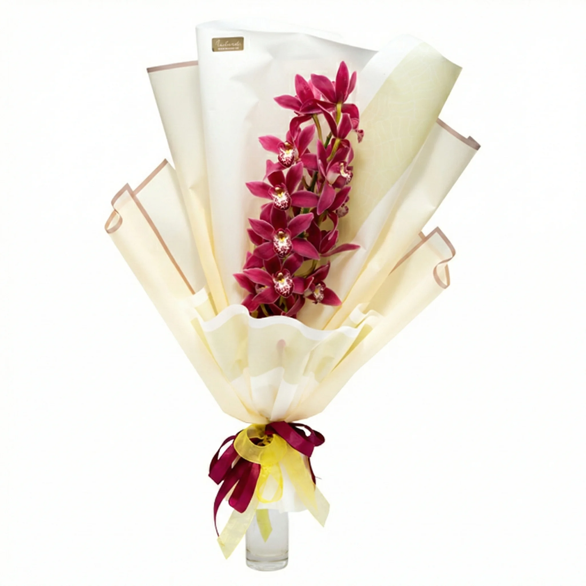 Selles unikaalses kimbus on kaunis ja elegantne orhidee oks asetatud luksusliku lillepaberi raamidesse. Ideaalne kingitus unikaalseks sündmuseks.