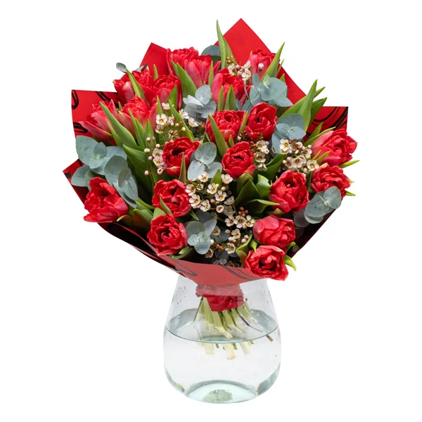 Soojadest punastest tulpidest lillekimp on vaimustav kingitus igaks tähtpäevaks. Tulbid toovad ruumi värskust ja elegantsust!
