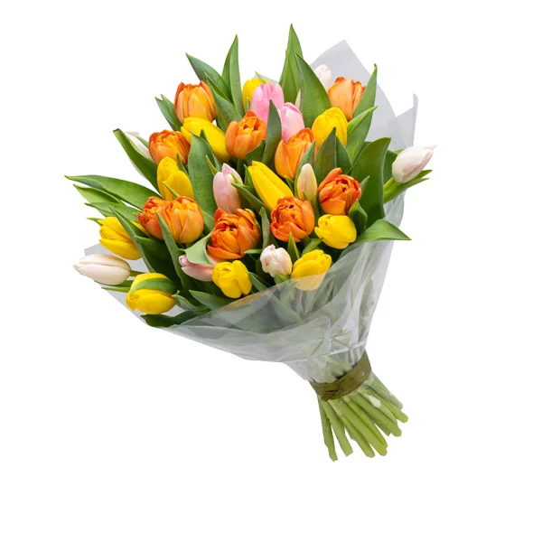 Säravatest värvilistest tulpidest lillekimp on ideaalne ja värvikirev kingitus igaks tähtpäevaks. Tulbid toovad ruumi värskust ja elegantsust!