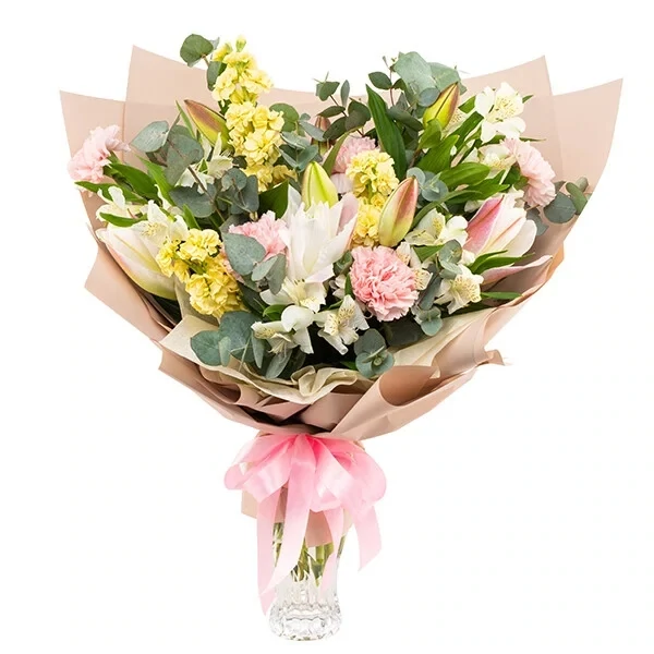 See kaunitest heledatest toonides lillekimp koosneb imelistest liiliatest, inkaliiliatest, kaunitest nelkidest ja suvistest levkoidest. Kimbule on lisatud kaunis kimburoheline ning dekoratiivpaber ja pael loovad imelisele kimbule viimistletud raami.