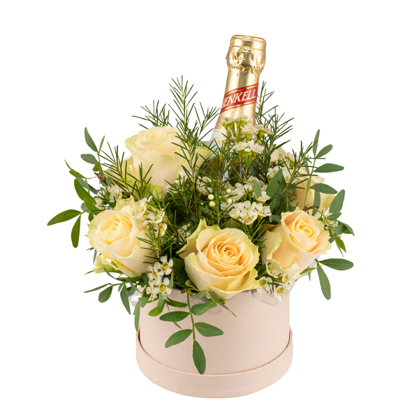 Rooside ja värske kimburohelisega kombineeritud maitsekas kingitus koos hoolikalt valitud vahuveiniga (0,2L). See lillekarp rahuldab ilumeeled kui ka pakub maitsemeelele kõrgetasemelist janukustutust.